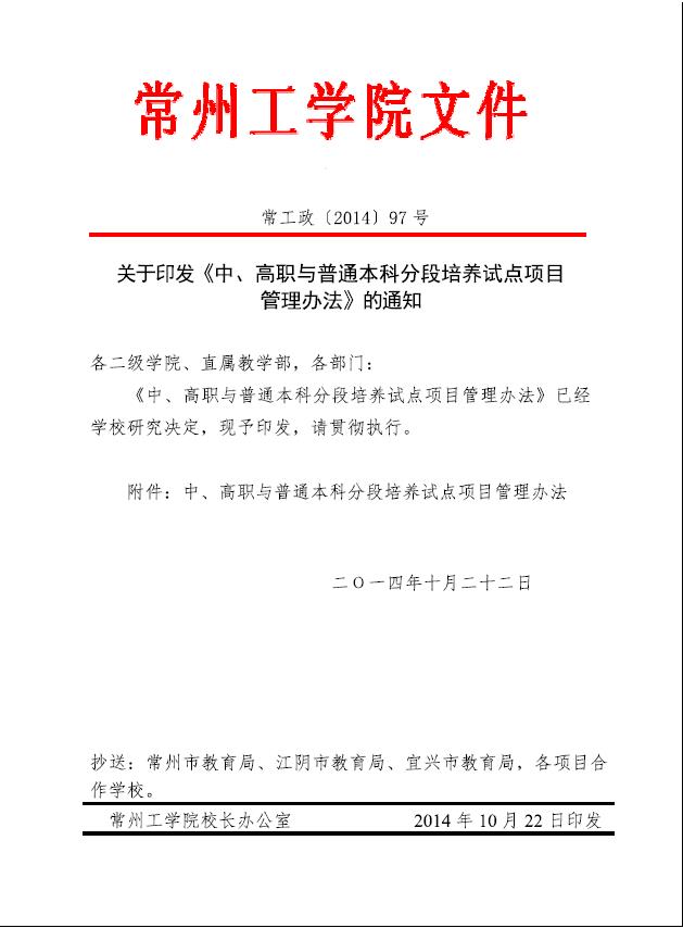 关于印发《中、高职与普通本科分段培养试点项目管理办法》的通知