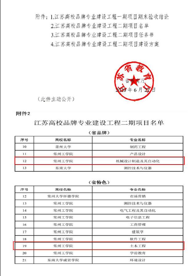 江苏省高校品牌专业建设工程二期项目:机械设计制造及其自动化(省品牌)、土木工程(省特色)