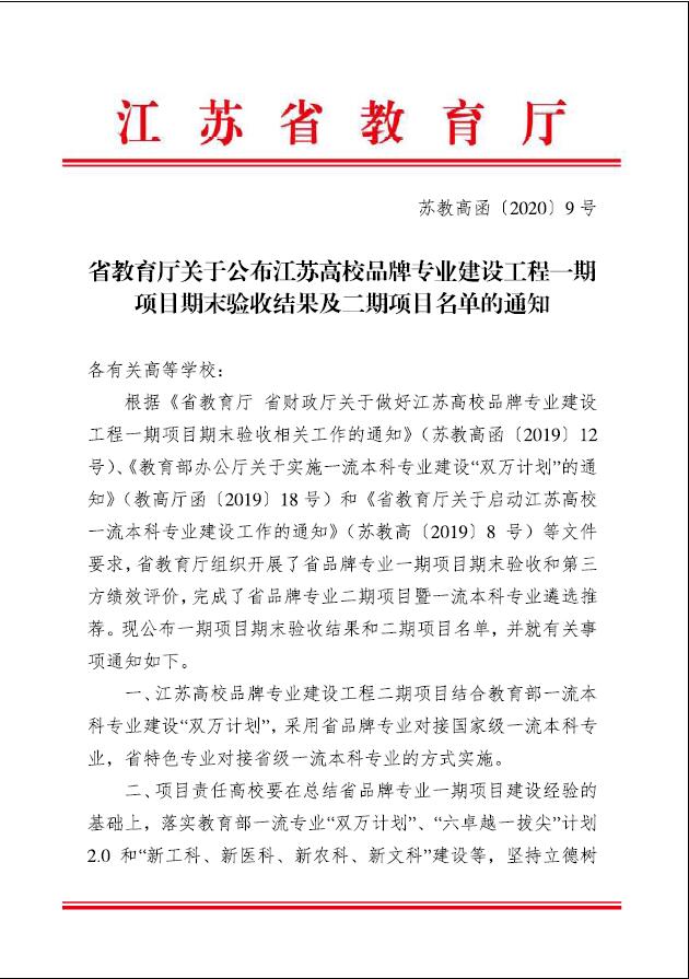 江苏省高校品牌专业建设工程一期项目验收通过专业:土木工程、机械设计制造及其自动化(优秀)