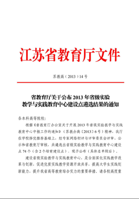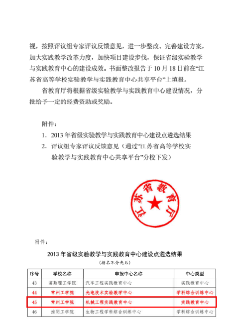 江苏省实验教学与实践教育中心:机械工程实践教育中心