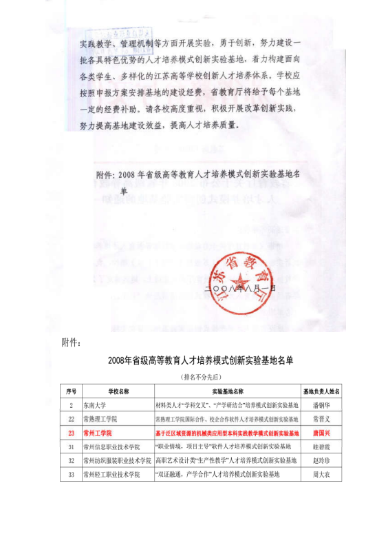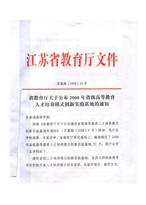 江苏省人才培养模式创新实验基地:基于泛区域资源的机械类应用型本科实践教学模式创新实验基地