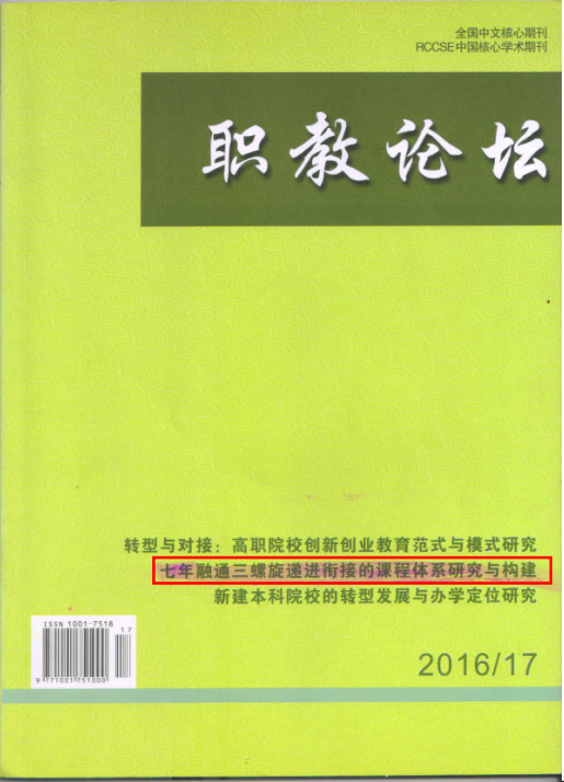 七年融通三螺旋递进衔接的课程体系研究与构建,《职教论坛(北大核心)》