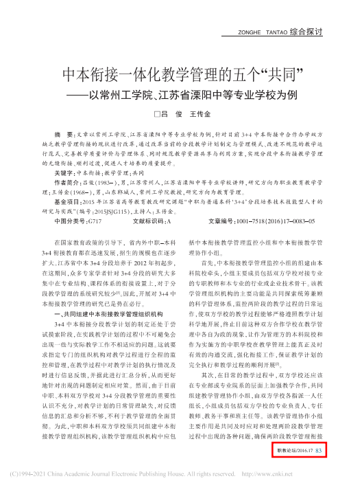 中本衔接一体化教学管理的五个“共同”,《职教论坛(北大核心)》