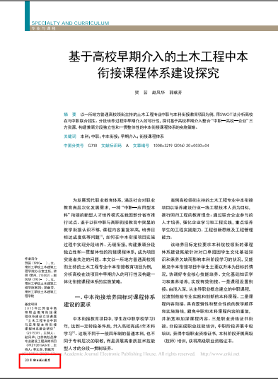 基于高校早期介入的土木工程中本衔接课程体系建设探究,《职业技术教育(北大核心)》