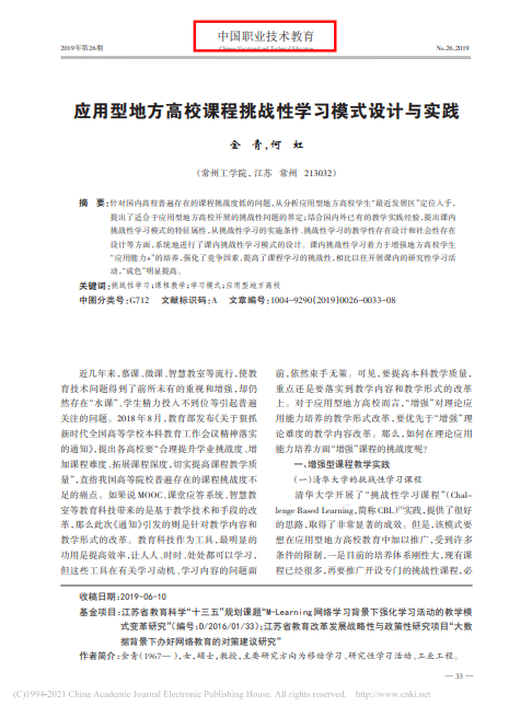 应用型地方高校课程挑战性学习模式设计与实践,《中国职业技术教育(北大核心)》
