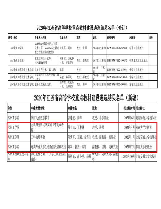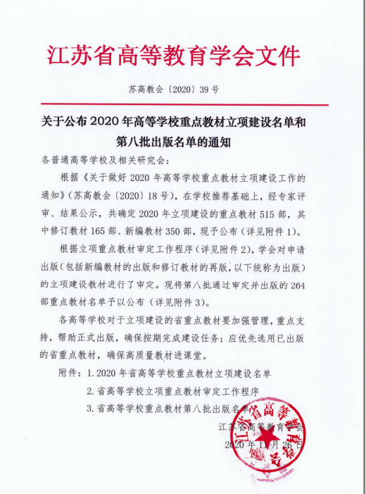 江苏省本科优秀培育教材3部(2020年)